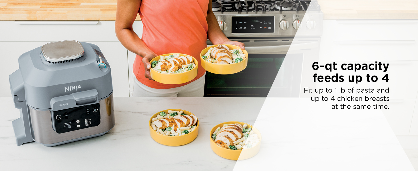 - CREATE A MEAL FOR UP TO 4: With 6-qt. capacity, fit up to 4 chicken breasts and 1 lb. of pasta to create a whole family meal in one pot.