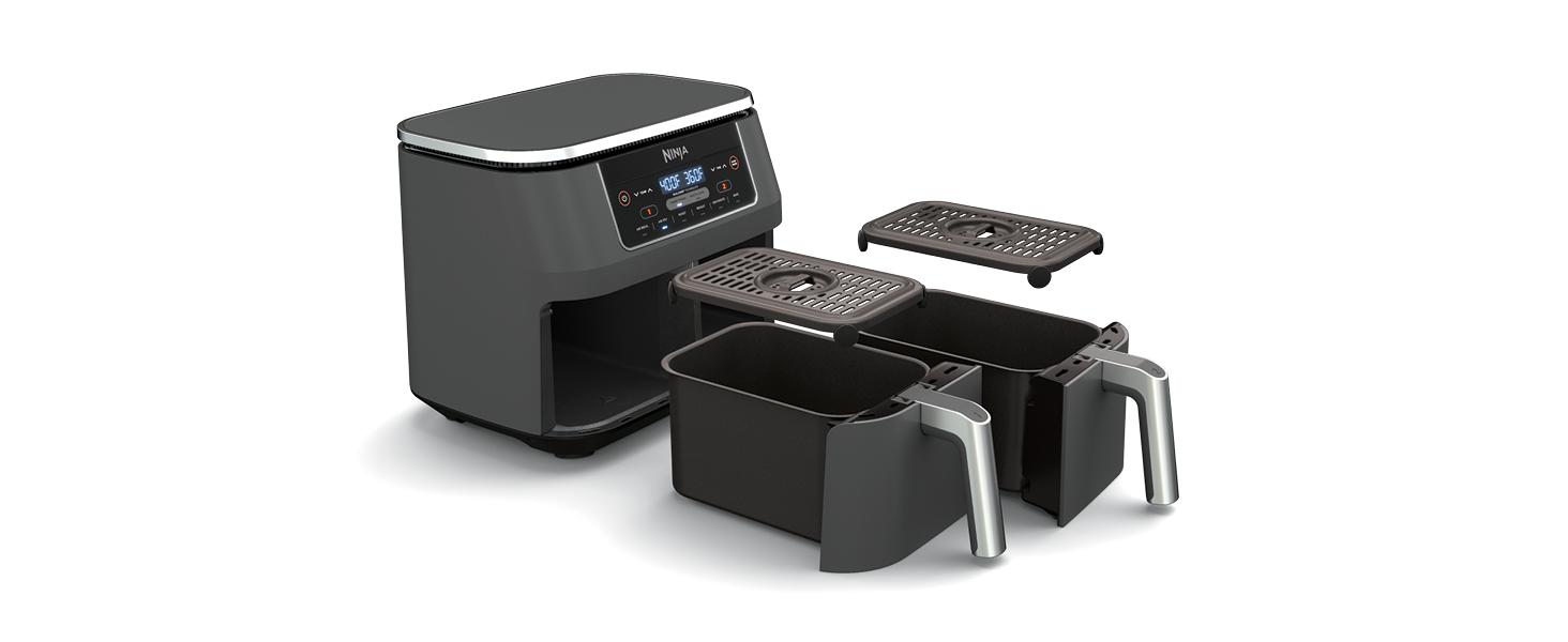 The Ninja Foodi 6-in-1 8-qt. 2-Basket Air Fryer with Dual Zone Technology. The first air fryer with 2 independent baskets that let you cook 2 foods at once, not back-to-back like a traditional single-basket air fryer. Dual Zone Technology's Smart Finish feature intelligently manages to cook so both foods finish at the same time.