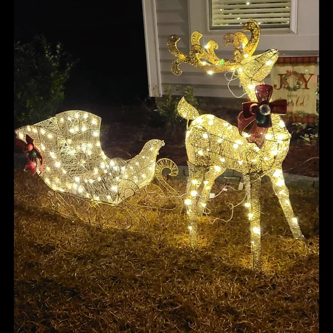 【Décor】Reindeer Pulling Sleigh Lighted Display