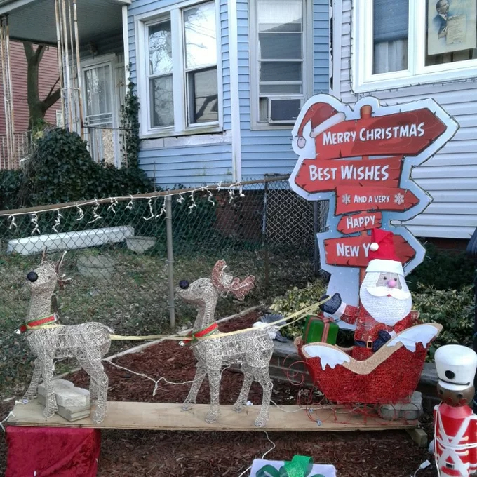 【Décor】Santa with 2 Deer Sleigh Christmas Decoration Lighted Display