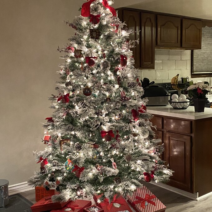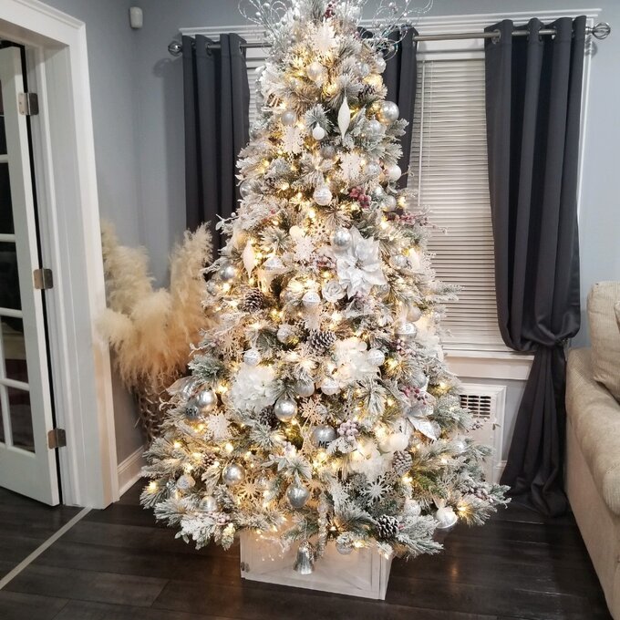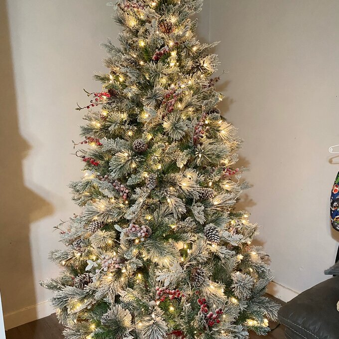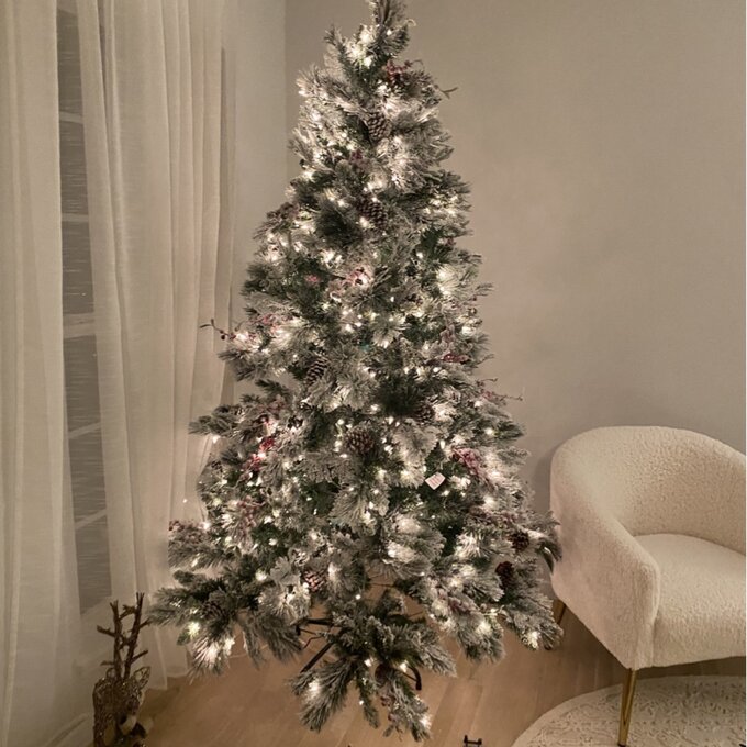 【Décor】Frosted Arctic 90'' Lighted Artificial Spruce Christmas Tree