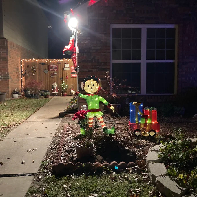 【Décor】2 Piece Elf Pulling Wagon Lighted Display Set