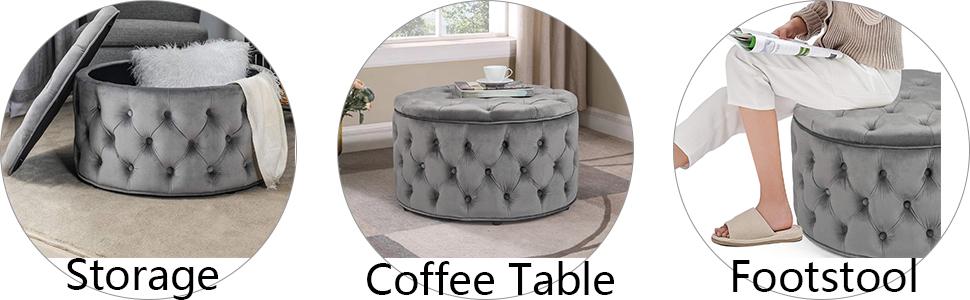 【Furniture】Homebeez Round Velvet Storage Ottoman, Button Tufted Footrest Stool Coffee Table