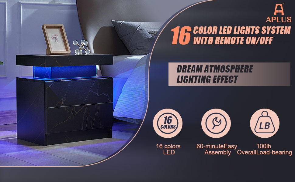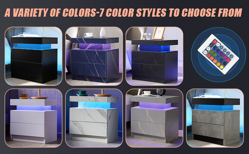 【Furniture】Nightstand Set of 2 LED Nightstand with 2 Drawers, Bedside Table with Drawers for Bedroom Furniture