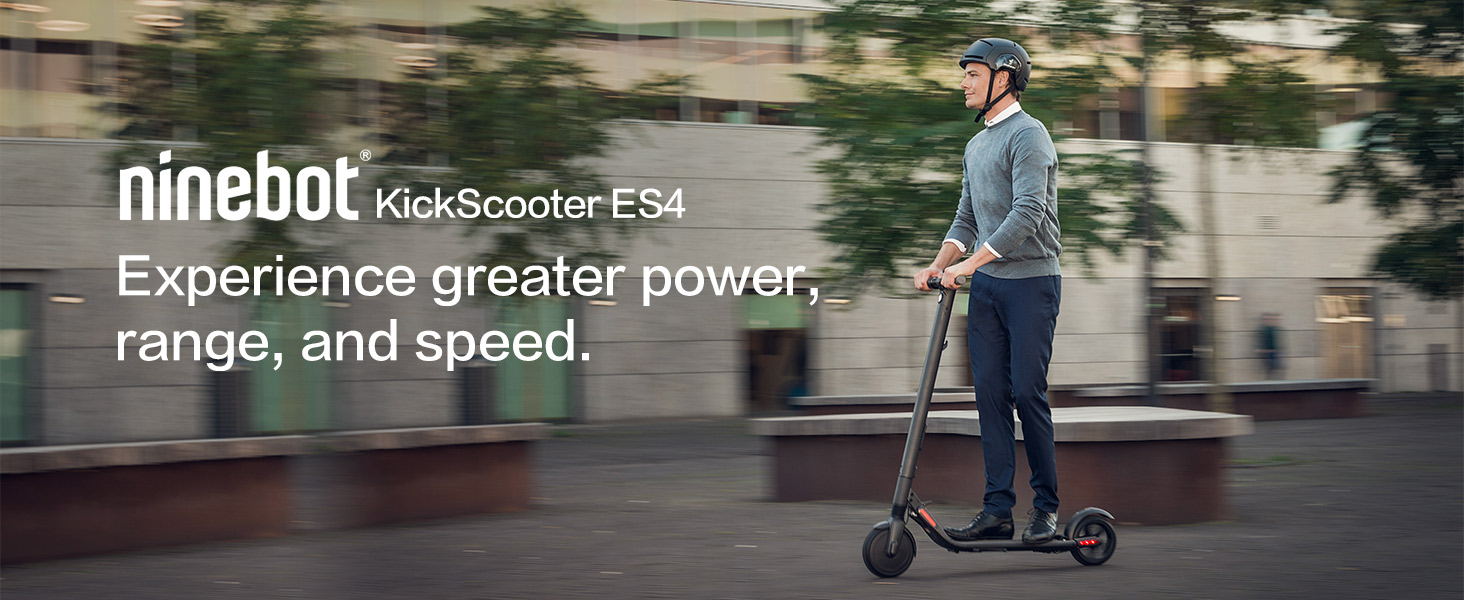 Portable Folding Design: Ninebot Kickscooter by Segway ES4 is sleek, lightweight and features a one-step folding system. Now our riders can carry the ES4 scooter on public transportation, store it in your car and take it to any destination you desire.